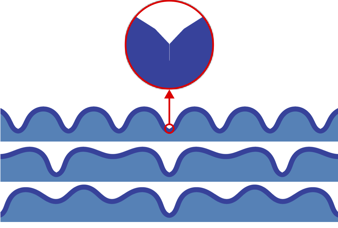 Wrinkling instability of 3D auxetic bilayers in tension.